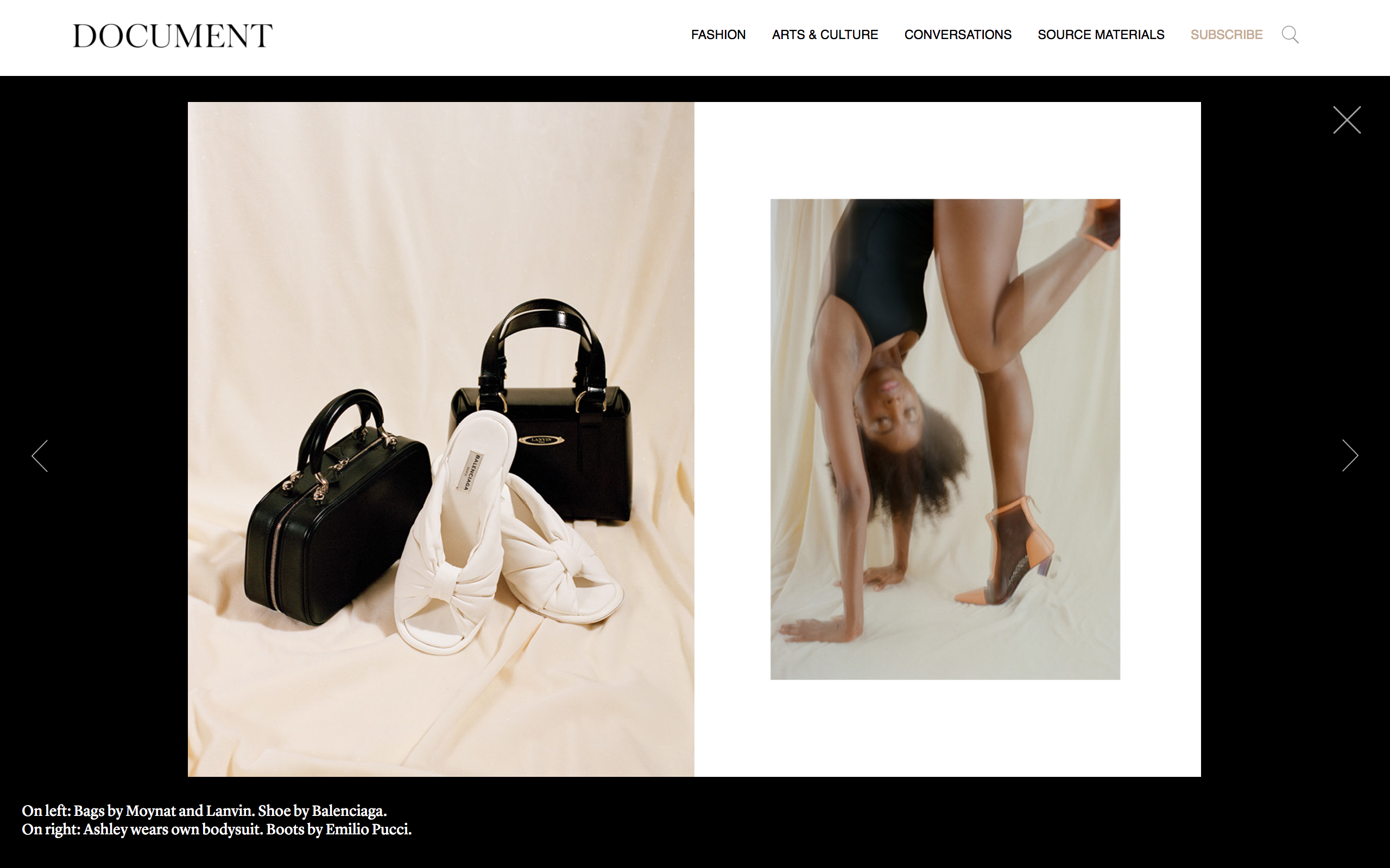 As a design intern at Document Journal, I was tasked with crafting both print and web layouts, building product mockups, editing and organizing archival photography for print, and designing other materials adjacent to the magazine and branding studio.